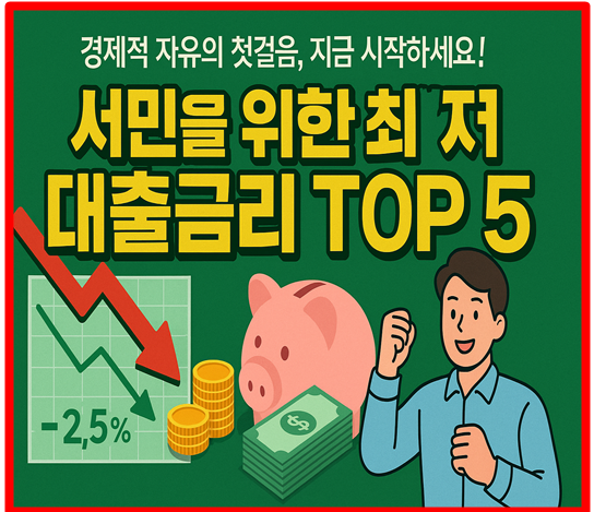 서민금융진흥원 추천상품 등 2025년 가장 낮은 금리 대출 TOP 5를 지금 확인하세요.